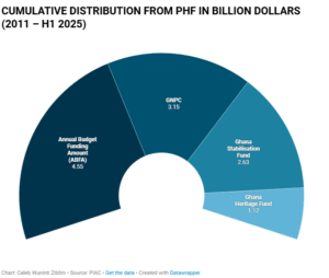 Another $2.6 billion has been paid into the Ghana Stabilisation Fund to cushion fiscal shocks, while the Ghana Heritage Fund, reserved for future generations, has received $1.1 billion and now holds roughly $1.3 billion.