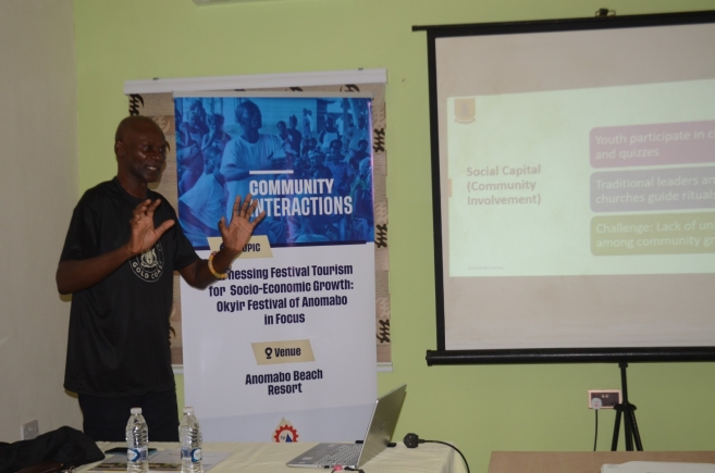 On January 21, 2026, a validation session was held in Anomabo to present the findings. The forum brought together key stakeholders, including members of the festival planning committee, assembly members, community leaders, women, youth, as well as representatives from the Ghana Fire Service and the Ghana Tourism Authority. The session provided an opportunity for participants to deliberate on the findings and discuss practical recommendations.
