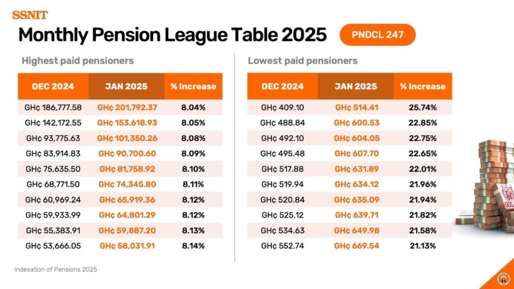 Ghana's pension divide: Top earner gets GH¢201,792 as lowest receive GH¢515